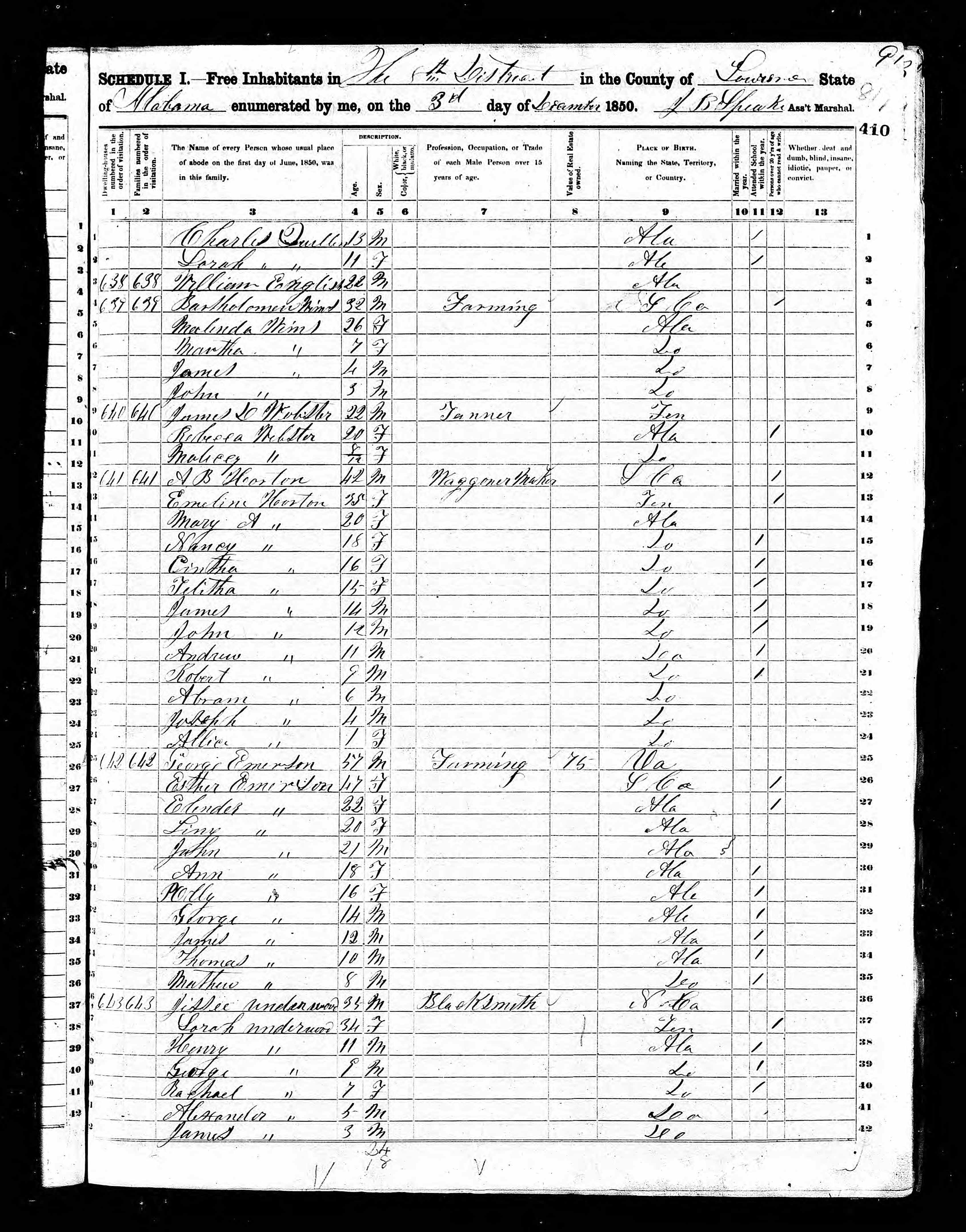 1850 United States Federal Census [in one of several areas, pending assessment]