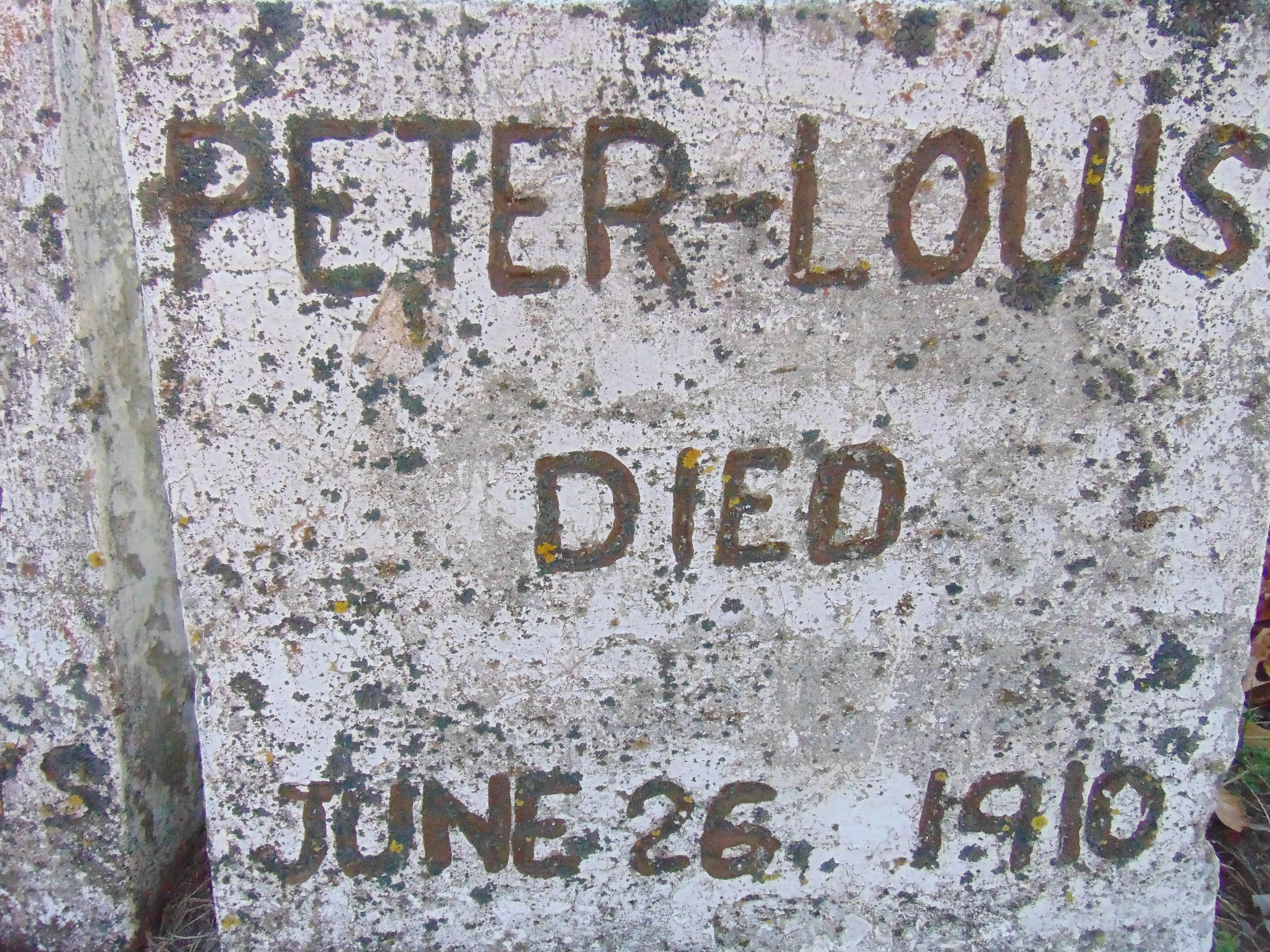 Detailed view of the gravestone of Peter & Louis Shallow, Twins [in one of several areas, pending assessment]